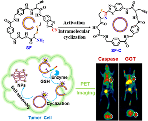 57.Jianguo Lin*, Dingyao Gao, Shijie Wang, Gaochao Lv, Xiuting Wang, Chunmei Lu, Ying Peng, Ling Qiu*. Stimuli-Responsive Macrocyclization Scaffold Allows In Situ Self-Assembly of Radioactive Tracers for Positron Emission Tomography Imaging of Enzyme Activity. J. Am. Chem. Soc. 2022, 144, 17, 7667-7675, https://doi.org/10.1021/jacs.1c12935