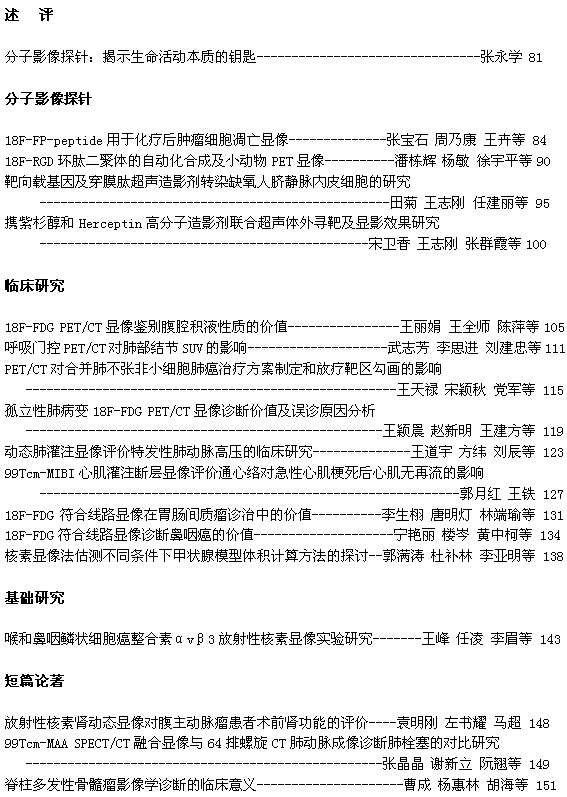 《中華核醫學與分子影像雜志》2012年第二期目錄