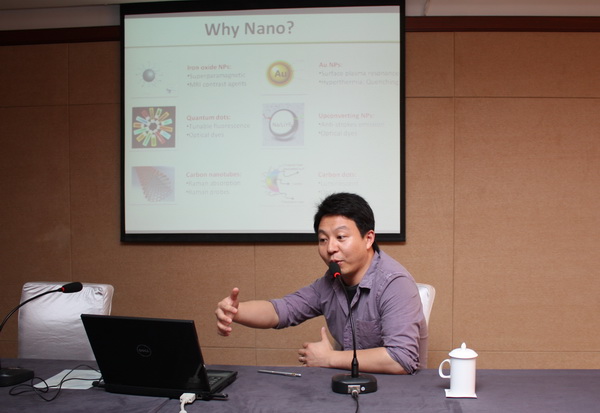 謝博士結合自身科研工作,對納米材料的理化特性、結構修飾、官能團改造以及納米技術在分子探針與分子影像方面的應用進行了深入闡述,并展望了納米技術的未來發展與應用前景。講座中,謝博士把自己團隊的一些科研思路、科研設計和科研成果,深入淺出、圖文并茂地展現給了我所科研人員,拓寬了大家的科研思路。