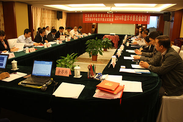 衛(wèi)生部核醫(yī)學(xué)重點實驗室暨江蘇省分子核醫(yī)學(xué)重點實驗室學(xué)術(shù)委員會2014年年度會議于2014年10月23日在我所召開。衛(wèi)生部核醫(yī)學(xué)重點實驗室學(xué)術(shù)委員會委員阮長耿、羅世能、王廣基、陳紹亮、胡剛、華子春、劉興黨、陳小元、包建東、謝敏浩、楊敏參加了會議,黃鋼、李亞民委員因事請假未能出席。江蘇省衛(wèi)生計生委科教處王大戎調(diào)研員、江蘇省科技廳尤琛輝博士出席了會議,宣讀了學(xué)術(shù)委員會批文并頒發(fā)了聘書,依托單位領(lǐng)導(dǎo)和有關(guān)人員列席會議。