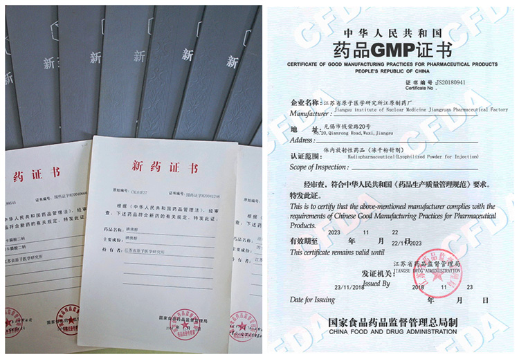 | 99Tcm葡庚糖酸鹽注射液 | 1993 | 國家四類新藥證書、(93)衛藥證字X-123 |
