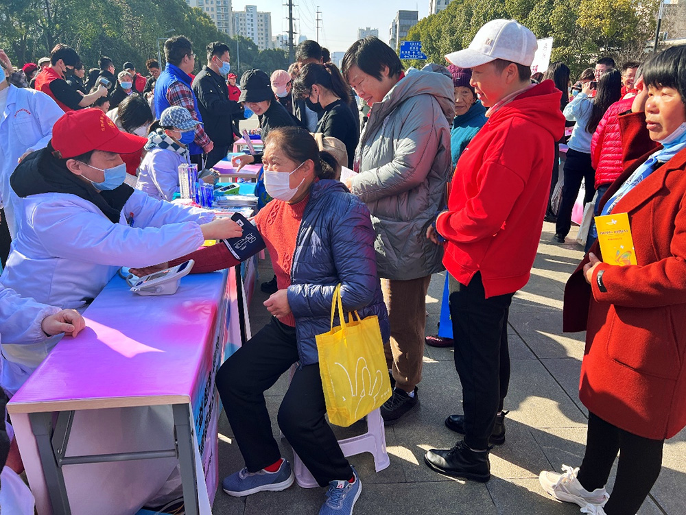 “您好!請問您需要幫助嗎?”“測量血壓請來這里!”“健康咨詢請到這里!”活動現場人頭攢動,居民們聽說有免費健康義診服務,一早就來排起了長隊。義診現場氣氛熱烈,我所青年志愿者們為居民們講解了有關糖尿病、高血壓、甲狀腺疾病等的防治和居家保養知識,發放了健康科普宣傳手冊;為他們測量血壓,提供健康咨詢。罹患甲狀腺疾病的居民,帶著自己的病歷,向江原醫院的醫生志愿者現場咨詢,志愿者們耐心仔細問診,認真查看病歷,為患者們釋疑解惑,提供下一步就診指導,獲得廣大居民好評。此次活動還得到了無錫新聞頻道《今晚60分》的報道。
