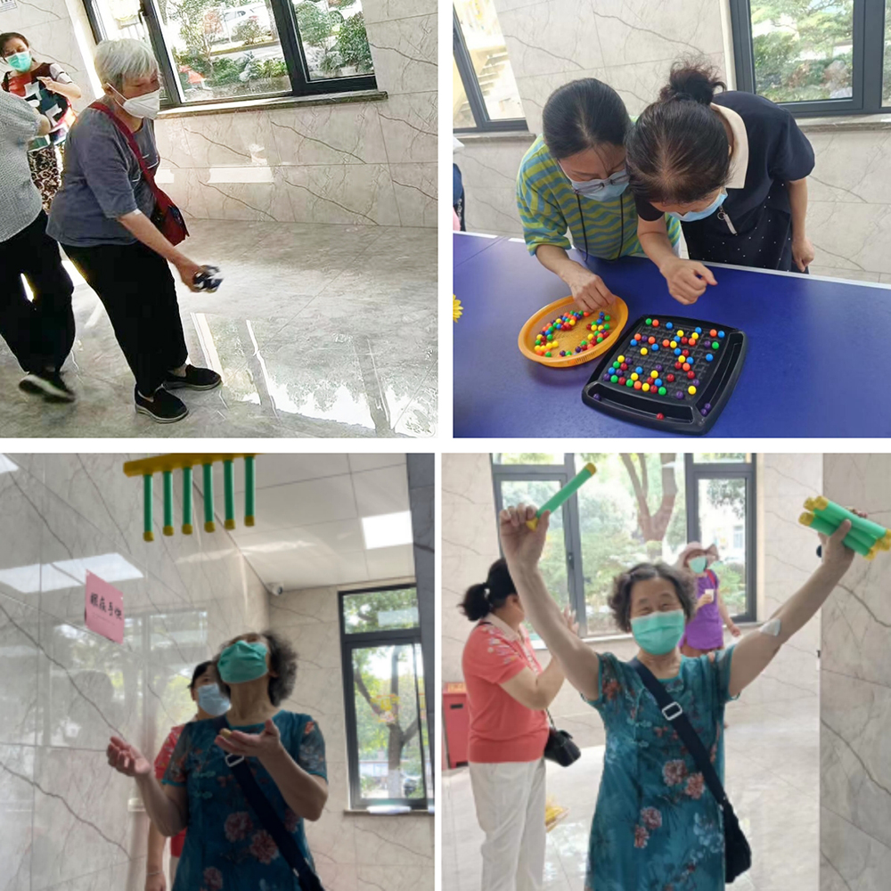 體檢結束后,老同志們來到退休職工活動室,興致勃勃地參與到趣味運動會當中。眼疾手快、開心消消樂、夾玻璃彈珠、沙包對對碰……這些充滿趣味的游戲,讓老同志開心地玩“嗨”起來!