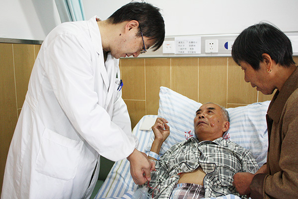 門診一天里,筆者幾乎沒有機會跟朱主任交流,直到下午4:05,暫時沒有患者進門。聽聞最近微信上有一篇很火的心酸作文,一個外科醫生的兒子抱怨爸爸在家愛睡懶覺,連狗都討厭他,朱主任一邊哈哈大笑一邊點點頭:“差不多也是這樣吧!一個外科醫生從參加工作到主刀一臺手術差不多需要十年才能成長起來,現在我一周兩天‘上臺’,以前還更多,要四天,開一天刀還是很吃力的。另外,每天都要查房,不管是周六周日還是節假日。”剛聊上這幾句,朱主任就被催著去參加一個關于醫院信息系統升級完善的工作會議了。