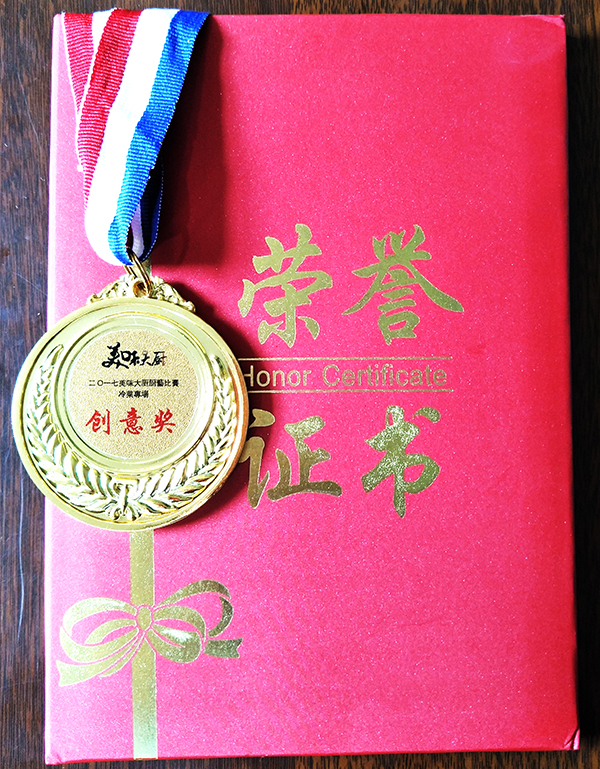通過激烈角逐,鄧維江獲得了“2017美味大廚廚藝比賽冷菜專場創意獎”。(江原山莊 張芳芳)