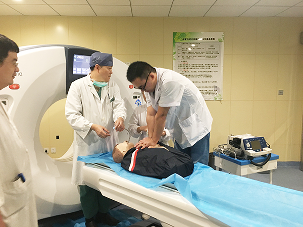 為了提高醫護人員對于突發呼吸心跳驟?;颊叩慕M織及應變處理能力,檢查醫務人員對搶救流程、搶救設備使用、心肺復蘇及除顫技能熟練掌握程度,9月13日下午,我所江原醫院放射科開展了一次“增強CT患者突發呼吸心跳驟停搶救應急演練”,內科、麻醉科、放射科、急診科等科室的醫護人員通力合作、有條不紊,迅速地進行配合搶救、安全轉運等工作,圓滿完成了本次演練活動。