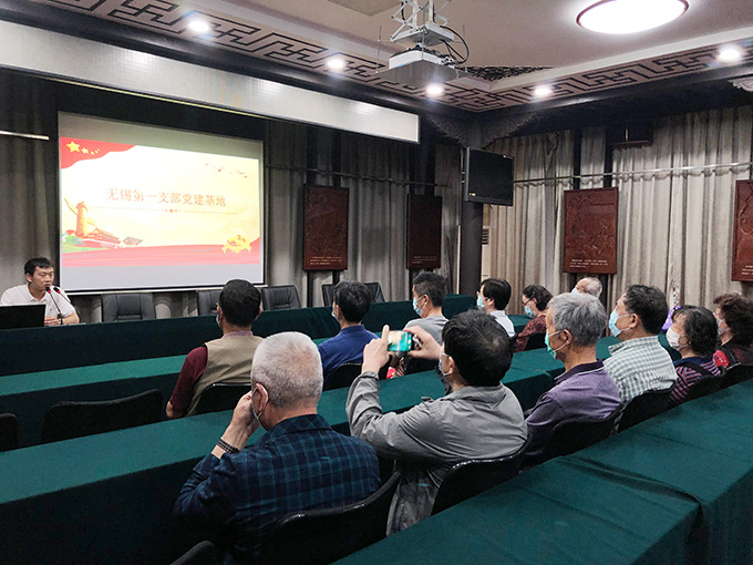 老黨員們接著來(lái)到黨建基地多壽樓的二樓,認(rèn)真聆聽了講解員的介紹,了解了無(wú)錫第一支部的誕生及發(fā)展史,以及孫冶方、秦邦憲、陸定一、陳翰笙等12位無(wú)錫籍杰出共產(chǎn)黨人的傳奇故事和英勇事跡。之后,他們懷著崇敬之情觀看了黨史專題片《誓言頌》,并集體站立唱響了《國(guó)際歌》。錚錚的誓言和肅穆的歌聲,仿佛穿越時(shí)空,回到那個(gè)風(fēng)雨如磐的年代,重現(xiàn)一代又一代的共產(chǎn)黨人為崇高革命理想拋頭顱、灑熱血的壯烈場(chǎng)景,使在場(chǎng)的每一個(gè)人深受感染,深刻感悟初心,堅(jiān)定理想信念。
